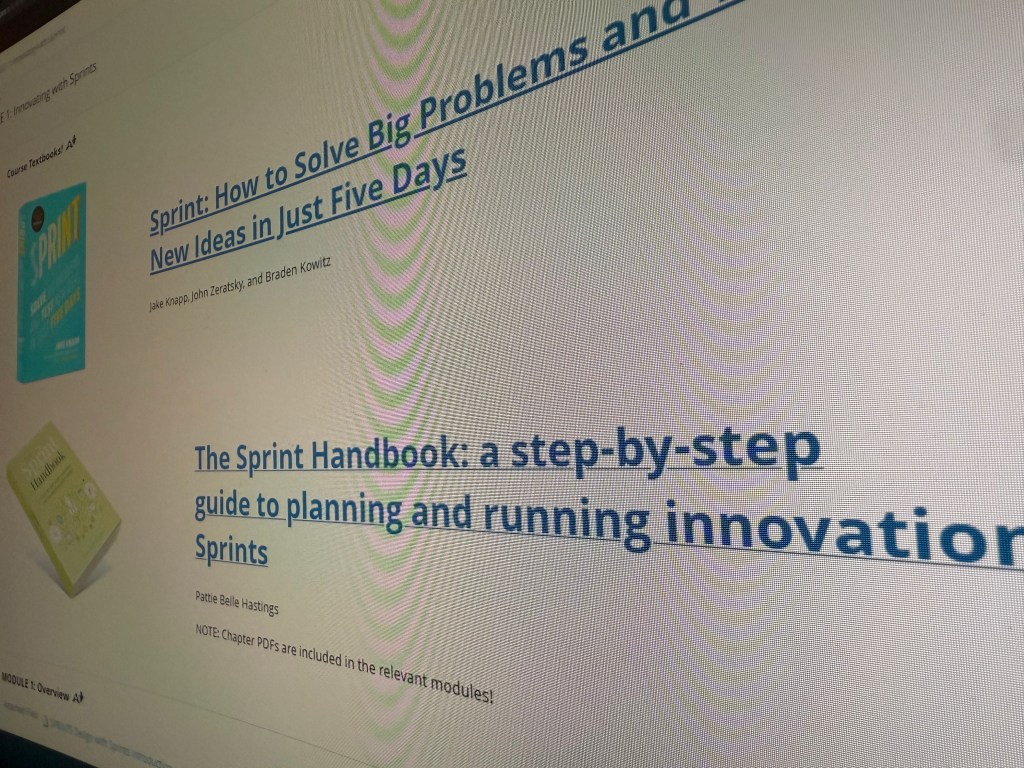 The sprint process as we know it was developed by Jake Knapp and John Zeratsky at Google Ventures in the early 2010’s. It was created to help startups and teams quickly solve critical problems in a compressed timeframe. I had always wondered how these big organizations and small startups alike get anything done, so it was highly interesting to delve deep into the origins of the sprint process! It’s broken down into 5 steps: Understand plus define, diverge plus decide, prototype, test, and reflect plus report. There are many foundational principles of Design Sprints to help keep the process smooth and functional for all team members involved. Two of them, for example, “Working together alone” emphasizes giving your teammates time and space to work by themselves while still contributing to the project as a whole. “Tangible Things Over Discussion” provides the value of crafting physical and/or visual representations of ideas, concepts, and prototypes, rather than relying solely on abstract discussions. It’s quite the incredibly deep and intricate system which I find ever more fascinating! This also holds true after learning about the basics of facilitation and the skills to use it properly!