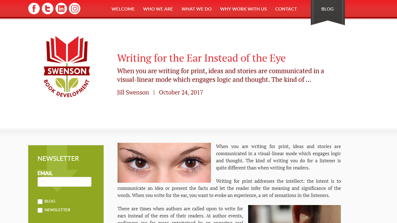 Swenson first outlines the distinction clearly. We appeal to the intellect when we write for print because it is logical, linear, and visual. The reader is able to stop, reread, and consider. However, the objective changes when we create material for an audience that will be able to hear our words.